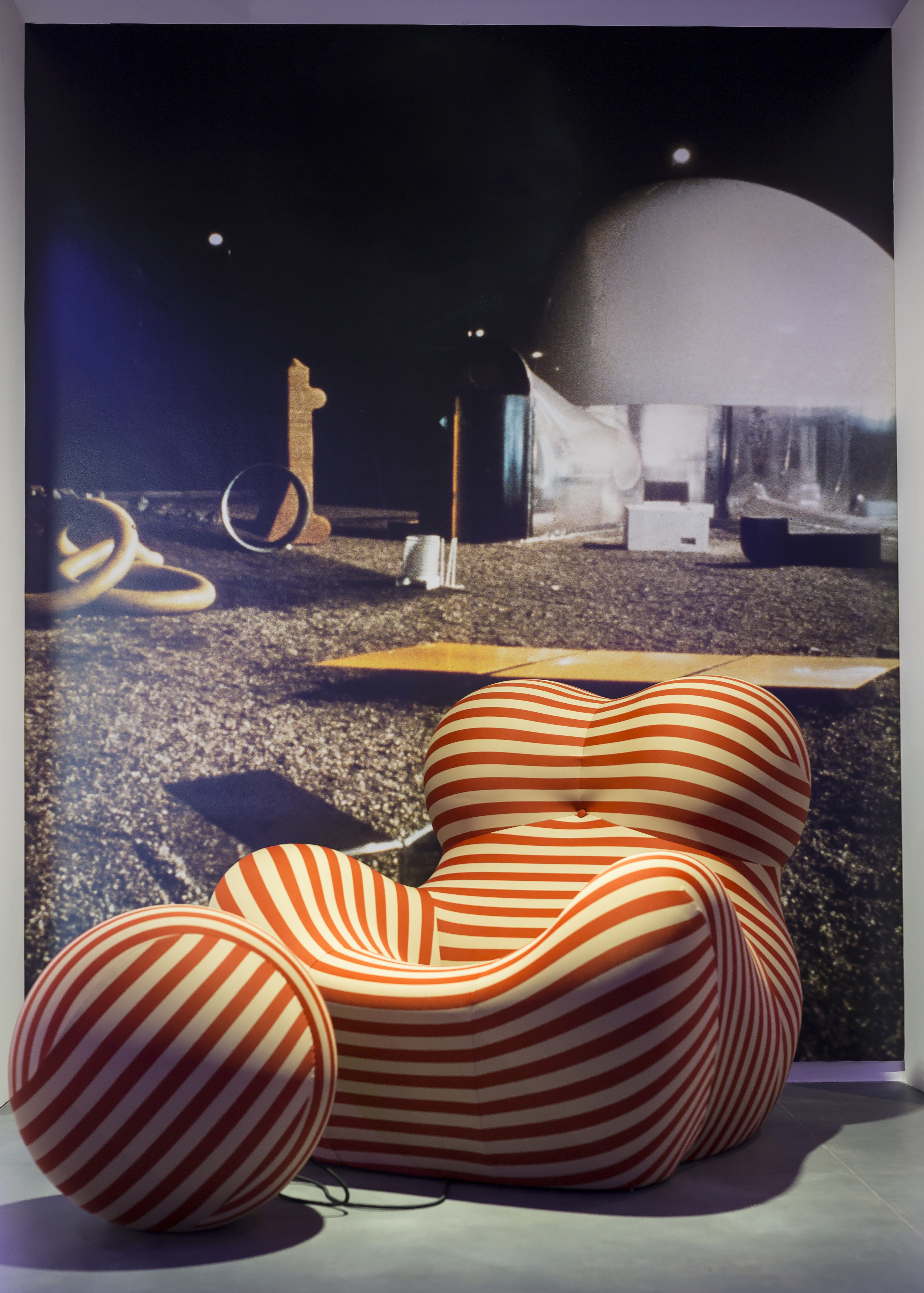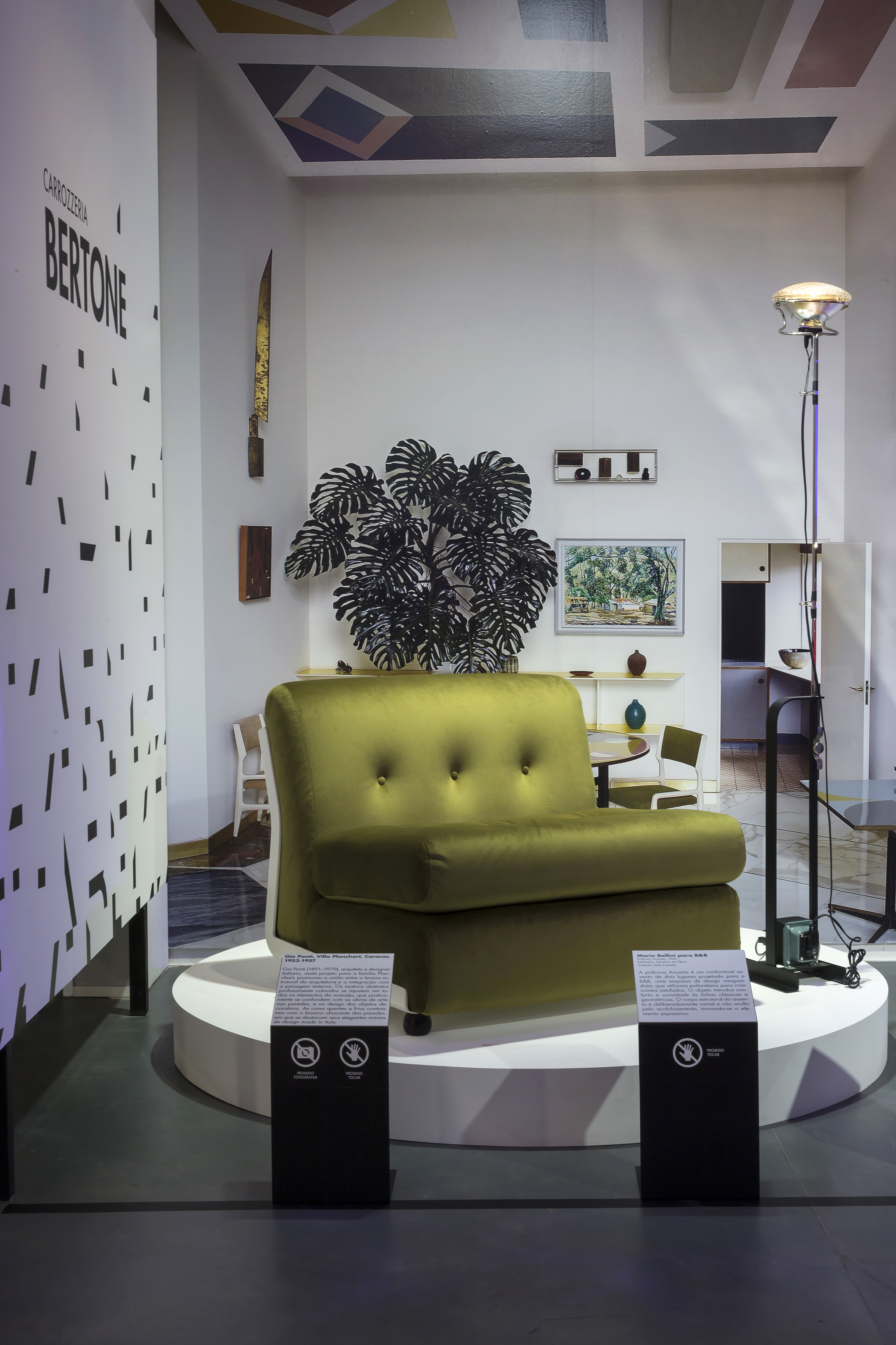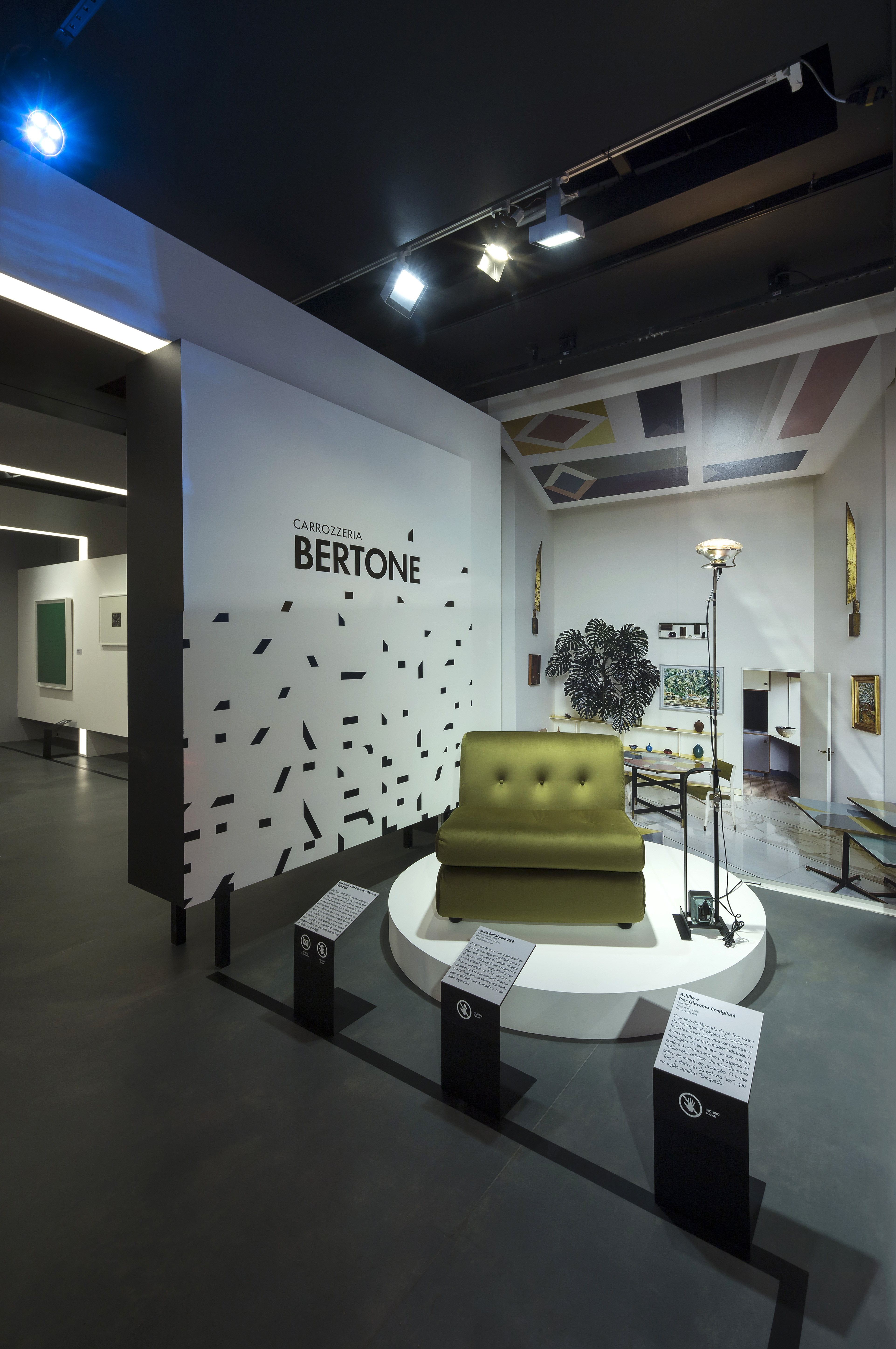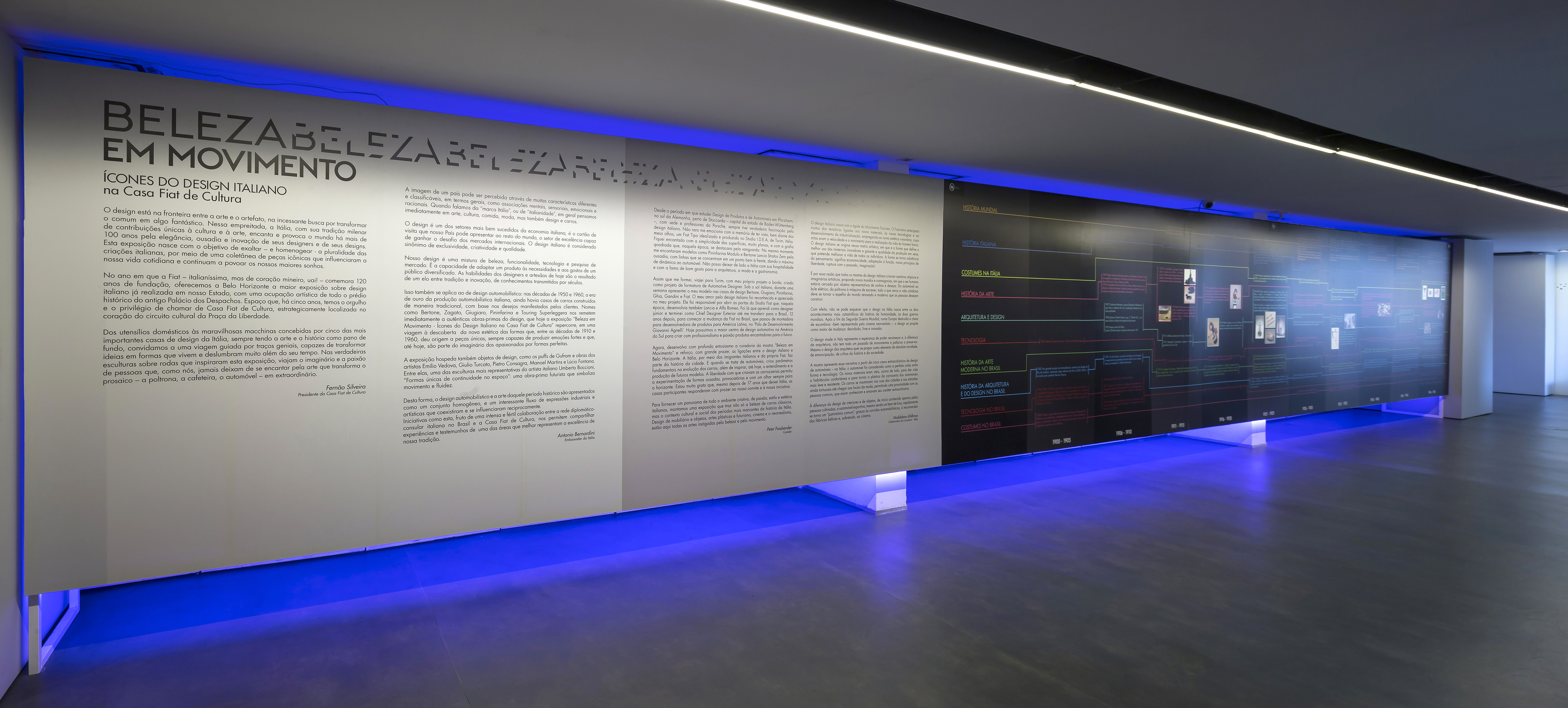 Beleza em Movimento – Ícones do design Italiano na Casa Fiat de Cultura. Dessa vez nosso projeto expografico contempla todos os andares da casa. Essa é uma foto dos lounges no hall de entrada que foram executados por processo de fabricação digital.