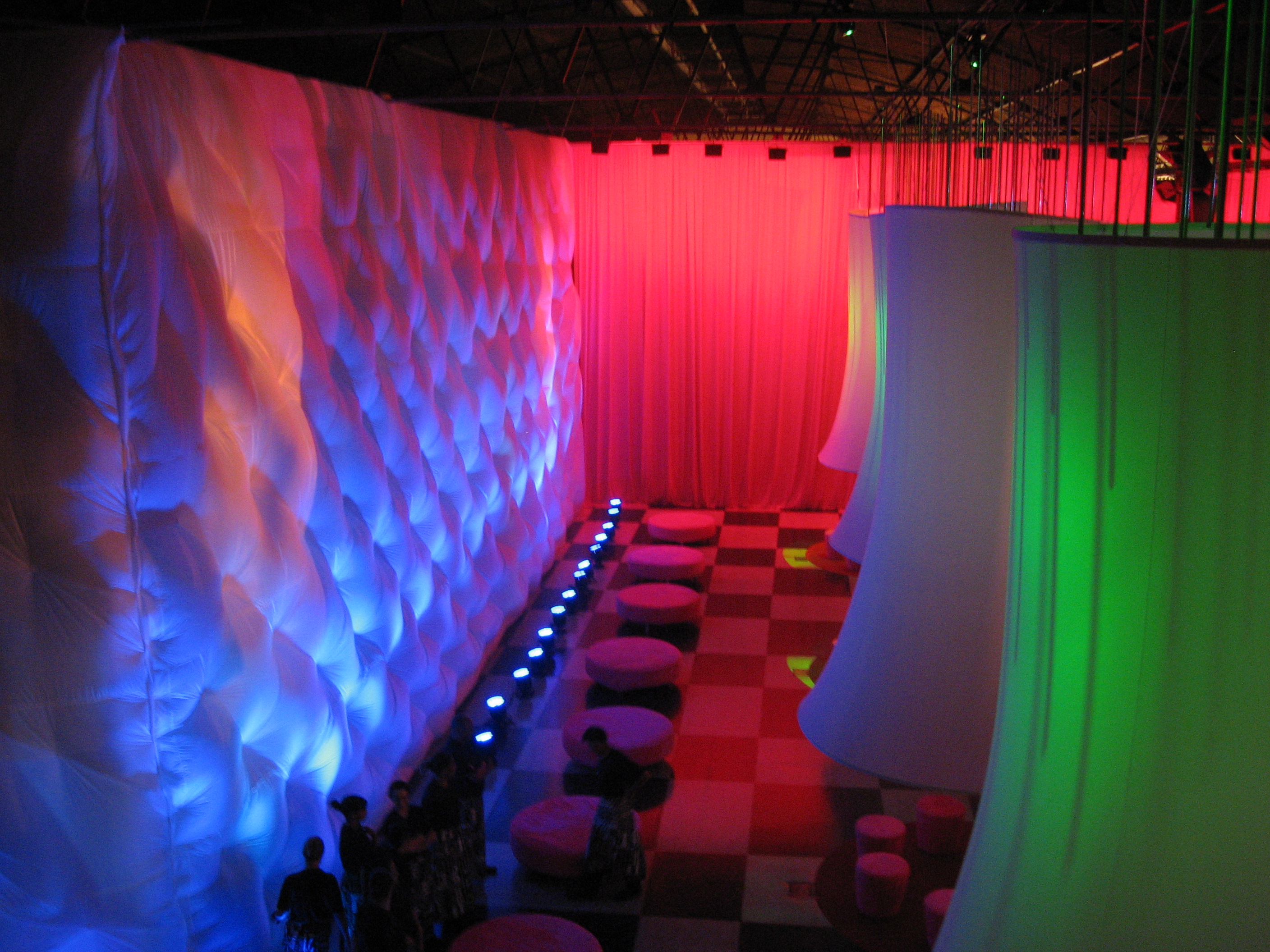 Detalhe luminárias e painel inflável