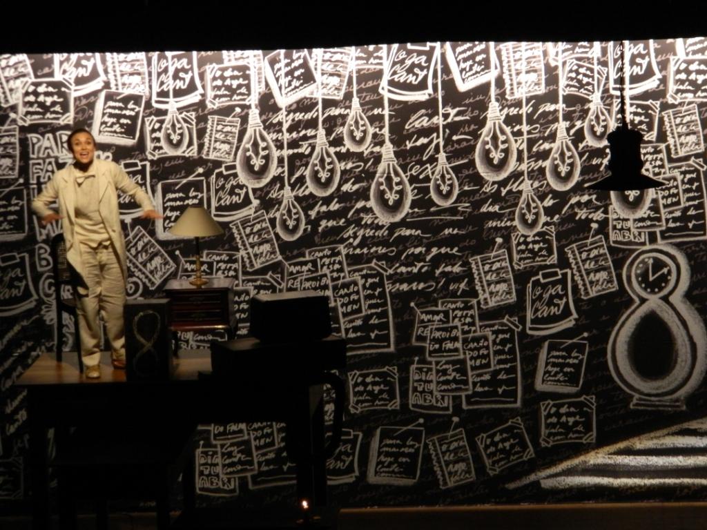 Fundo de palco em tecido ilustrado por Ronaldo Fraga